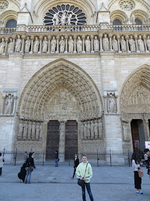 Our final day of touring Paris was certainly filled with activity. We started with a quick breakfast of croissants from the bakery and some fruit and coffee. After an initial "oops we can't find one of our metro passes" we located it on the floor by the bed and made our way to the Metro down to Notre Dame Cathedral. When I was a child my parents took me to Montreal and while I don't remember much of the quick trip I do remember the Notre Dame Cathedral there modelled on the one in Paris. I remember sitting in awe at the beauty and magesty of such a place. I could not go to Paris without seeing the original. It did not disappoint. My children are all baptized Catholic but we do not go to mass so the kids were a little out of their element, but I don't think you can take the Catholic out of a girl who was raised singing at weekly masses.